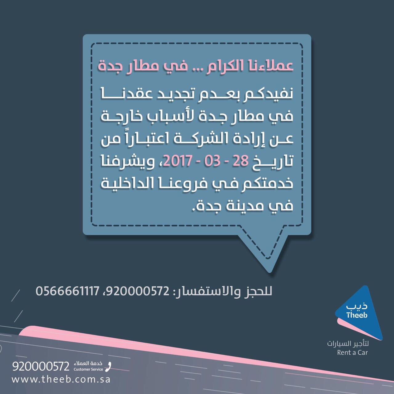 ذيب لتأجير السيارات V Twitter عملاءنا الكرام نفيدكم بعدم تجديد عقد ذيب لتأجير السيارات في مطار جدة اعتبارا من تاريخ 28 03 2017 للحجز والاستفسار 920000572 0566661117 Https T Co E0e6cnnfgp