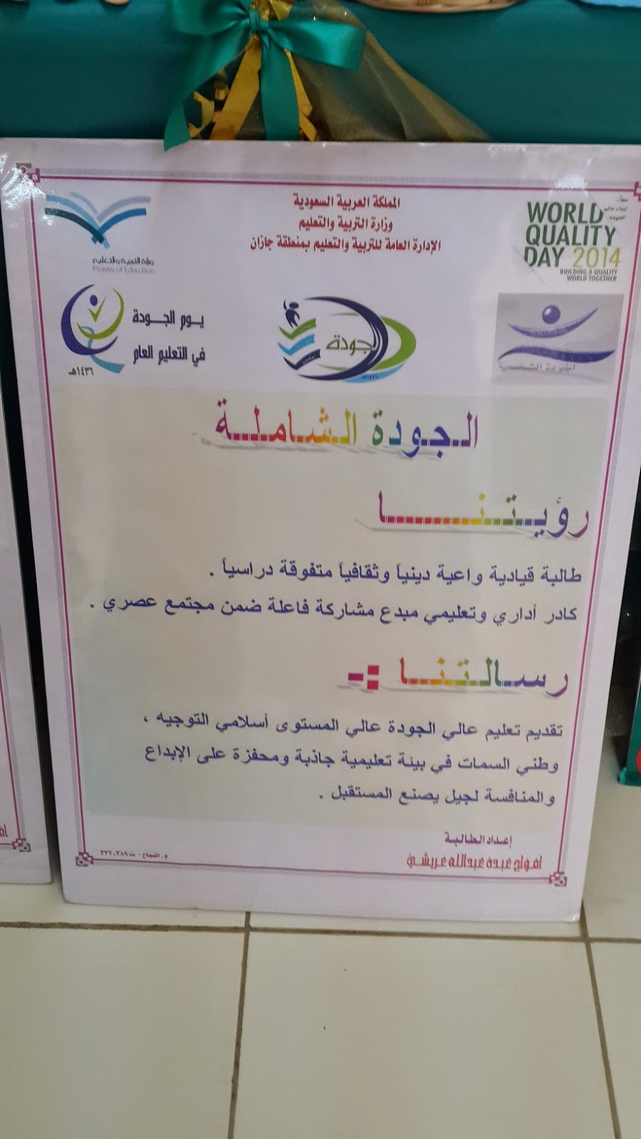 تحفيظ القرآن بصامطة تم تفعيل يوم الجودة العالمي 2014 م في مجمع تحفيظ القرآن بصامطة