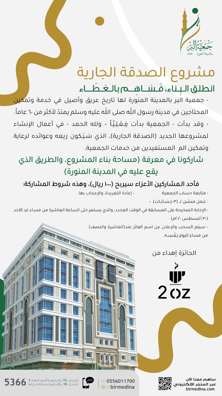 جمعية البر بالمدينة المنورة On Twitter شاركنا واربح 1000 ريال بدأت الجمعية ف ـع ـل ـي ـا في أعمال الإنشاء لمشروعها الجديد الصدقة الجارية فما مساحة بناء المشروع وم ـا الطريق الذي يقع عليه في المدينة المنورة